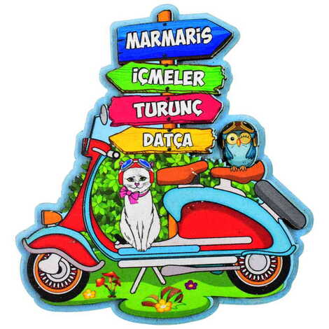 Wholesale Marmaris Themed UV Printed Heart Shaped Refrigerator Magnet 86x62 mm