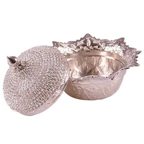 Metal Turkish Swaroski Silver Coffee Cup Set Of 6 With Velvet Gift Box