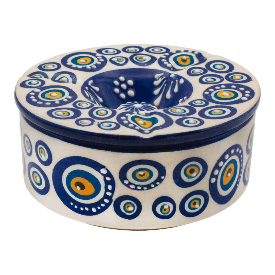 Nazar Themed Embossed Large Cylinder Ashtray with Lid