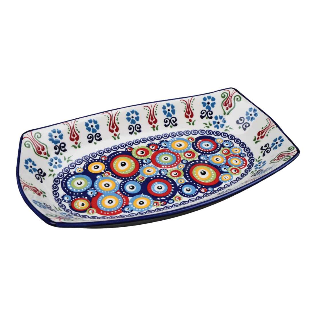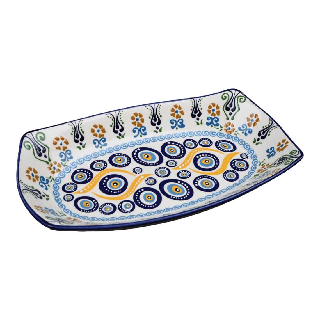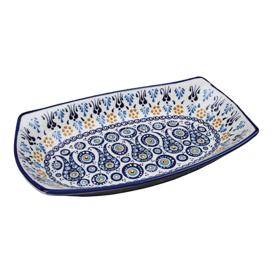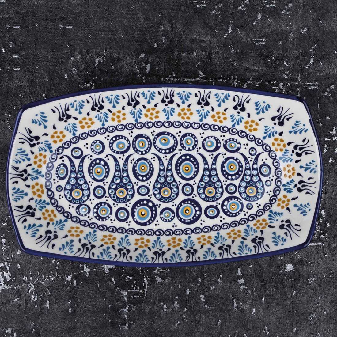 Özel Kabartma Nazar Derin Çini Kayık Tabak 29X18X4 Cm