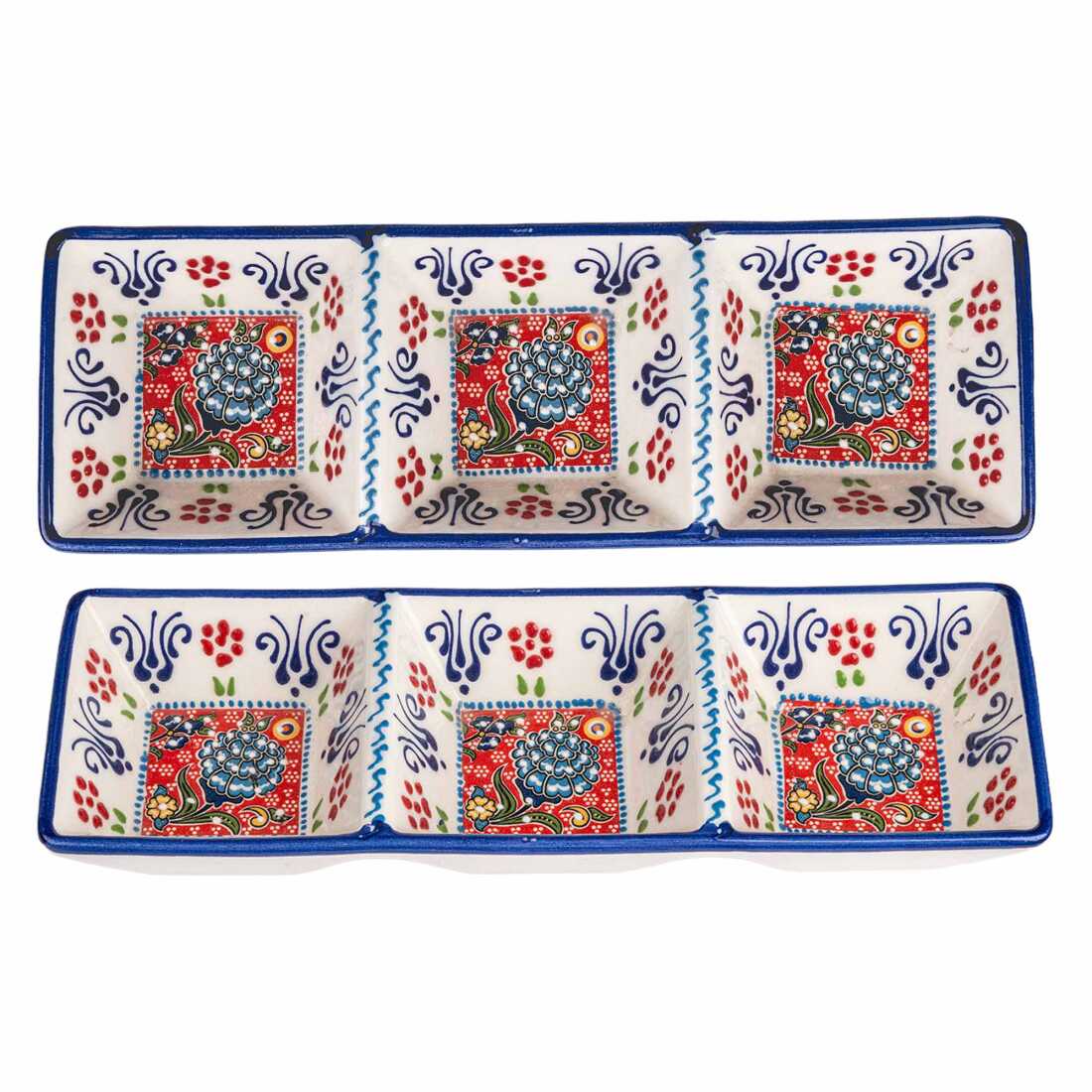 Çini Temalı Özel Kabartma Üçlü Yuvarlak Çerezlik Küçük 13 Cm