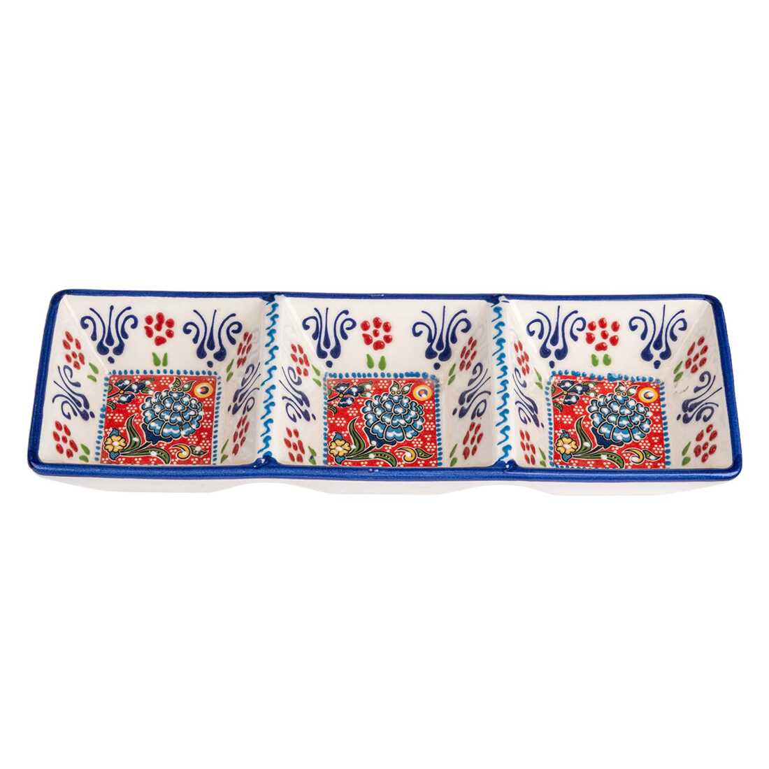 Çini Temalı Özel Kabartma Üçlü Yuvarlak Çerezlik Orta 18 Cm