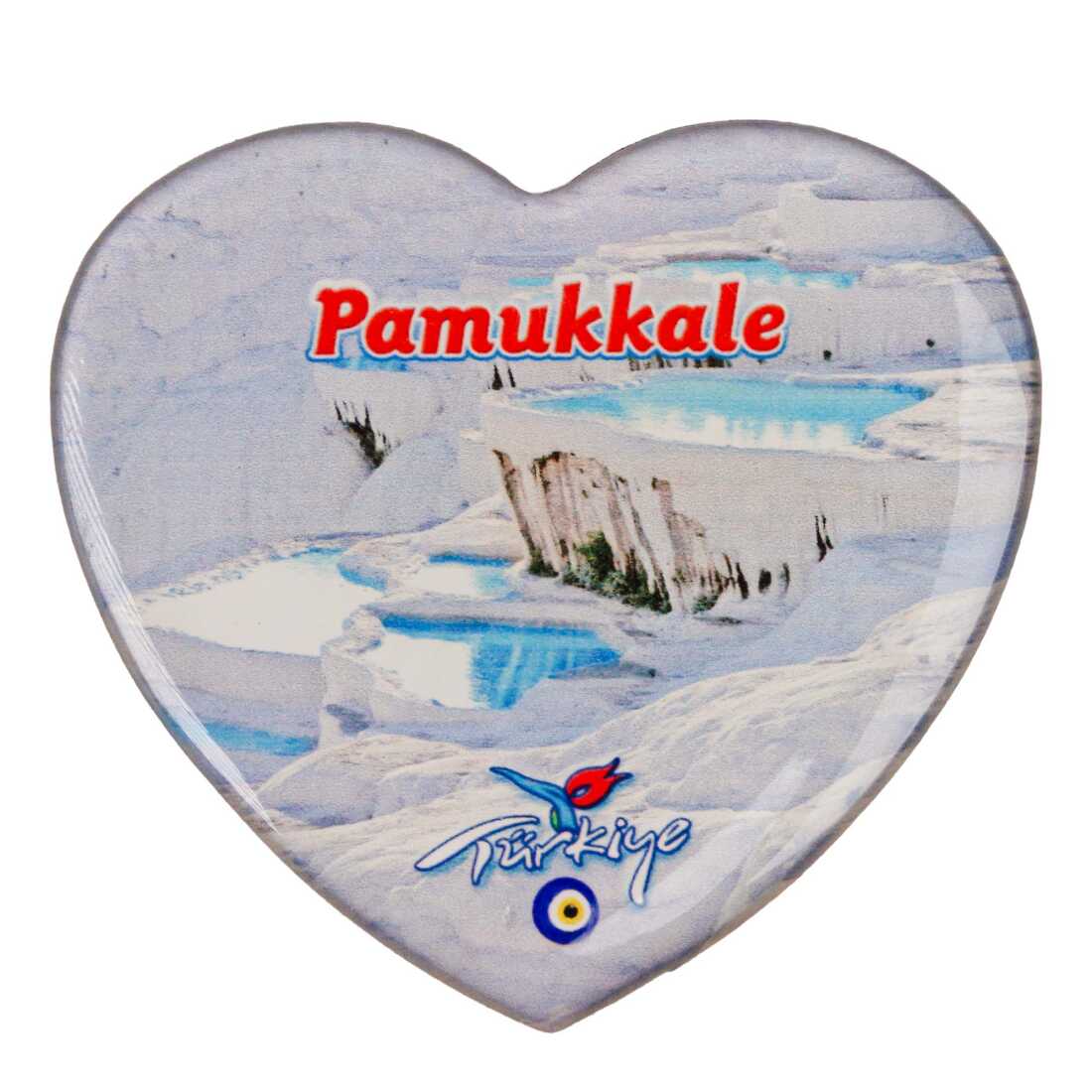 Pamukkale Temalı Myros Kalp Magnet 65x60 mm