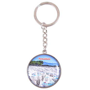 Pamukkale Themed Metal Double Face Round Keychain 40x95 mm