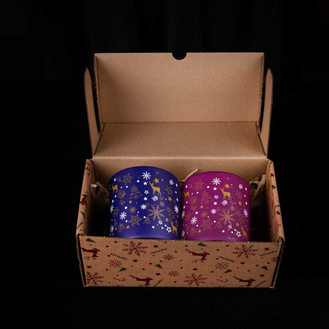 Toptan Lacivert Geyikli Winter Cam Bardak Mum
