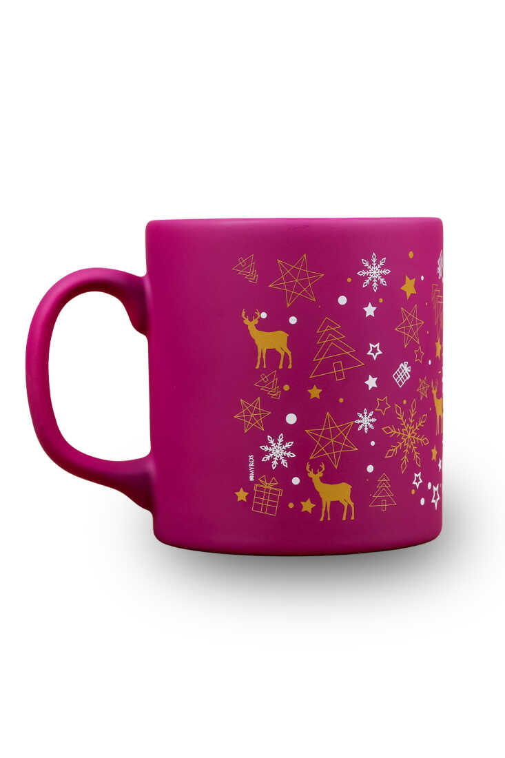 Toptan Mor Yılbaşı Figürlü Seramik Kupa