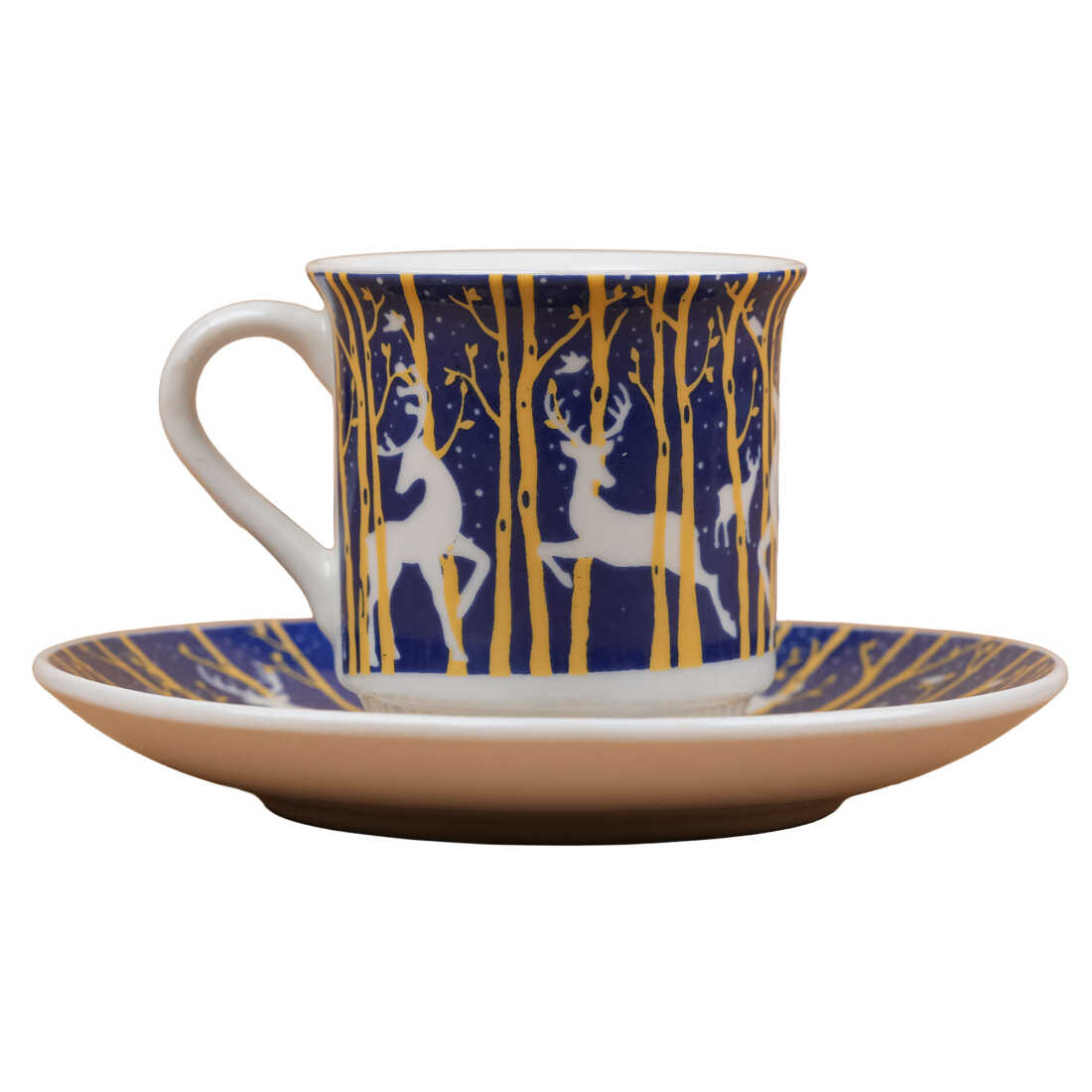 Toptan Porselen İkili Lacivert Klasik Geyikli Kahve Fincanı