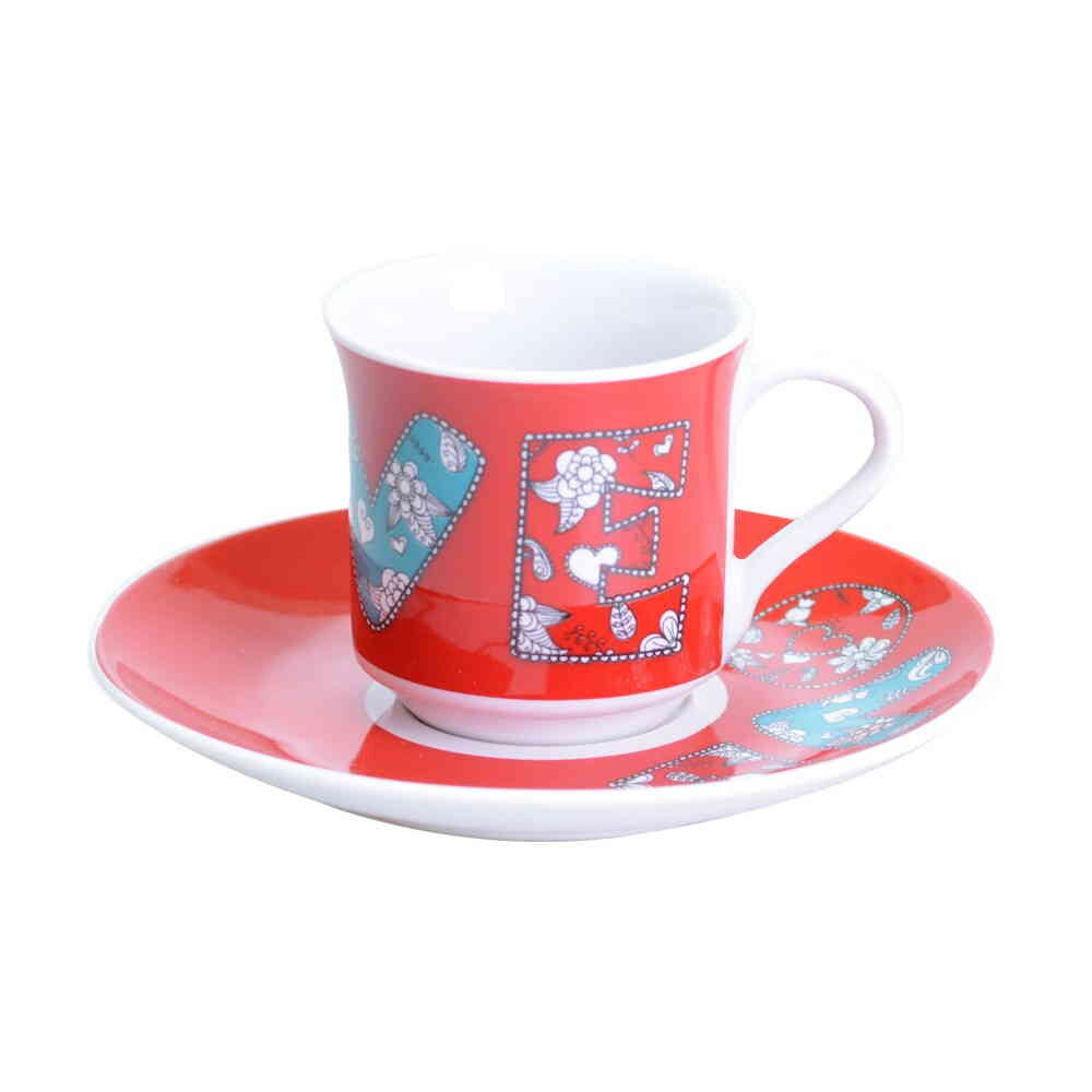 Sweetheart Themed Turkish Ceramic Custom Printed Turkish Coffee Cup Set of 2 pcs