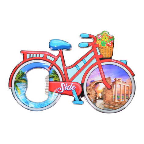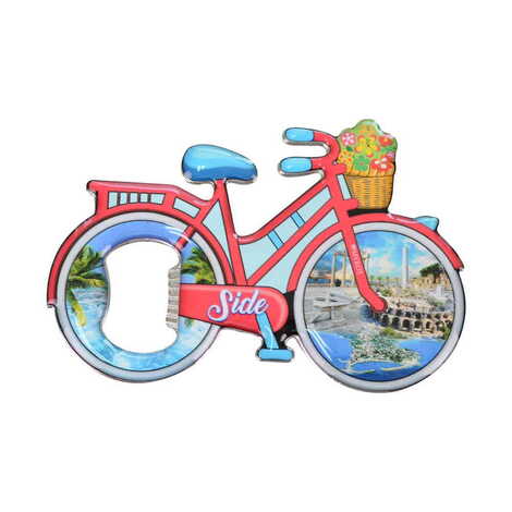 Side Themed Bicycle Shaped Metal Magnetic Bottle Opener 100x65 mm