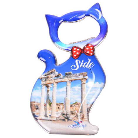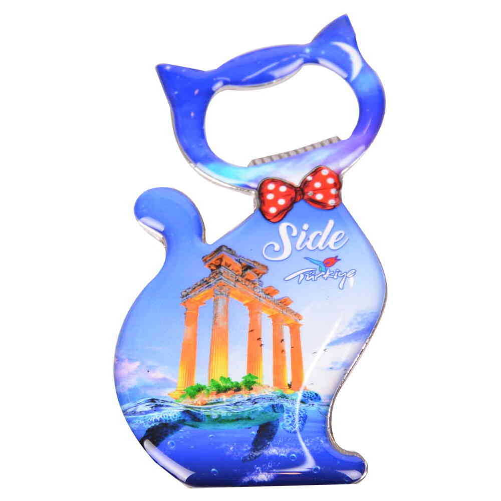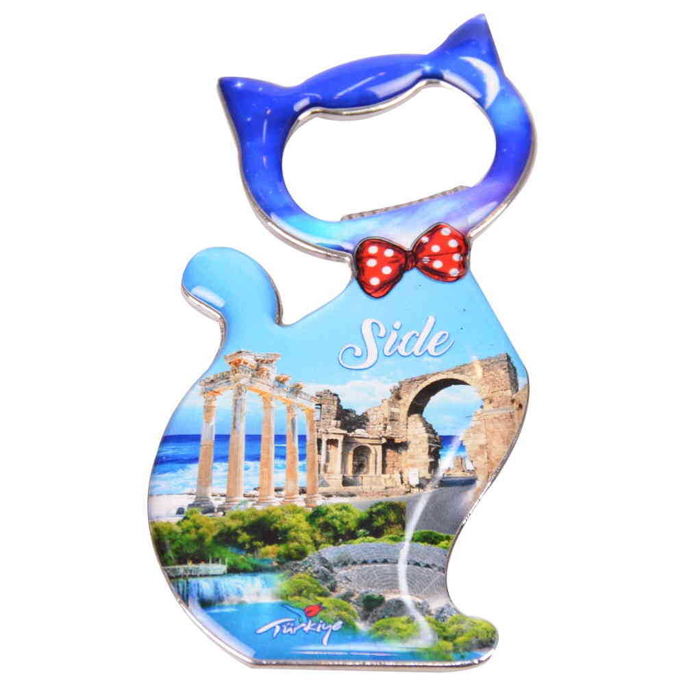 Side Themed Cat Shaped Metal Magnetic Bottle Opener 97x48 mm