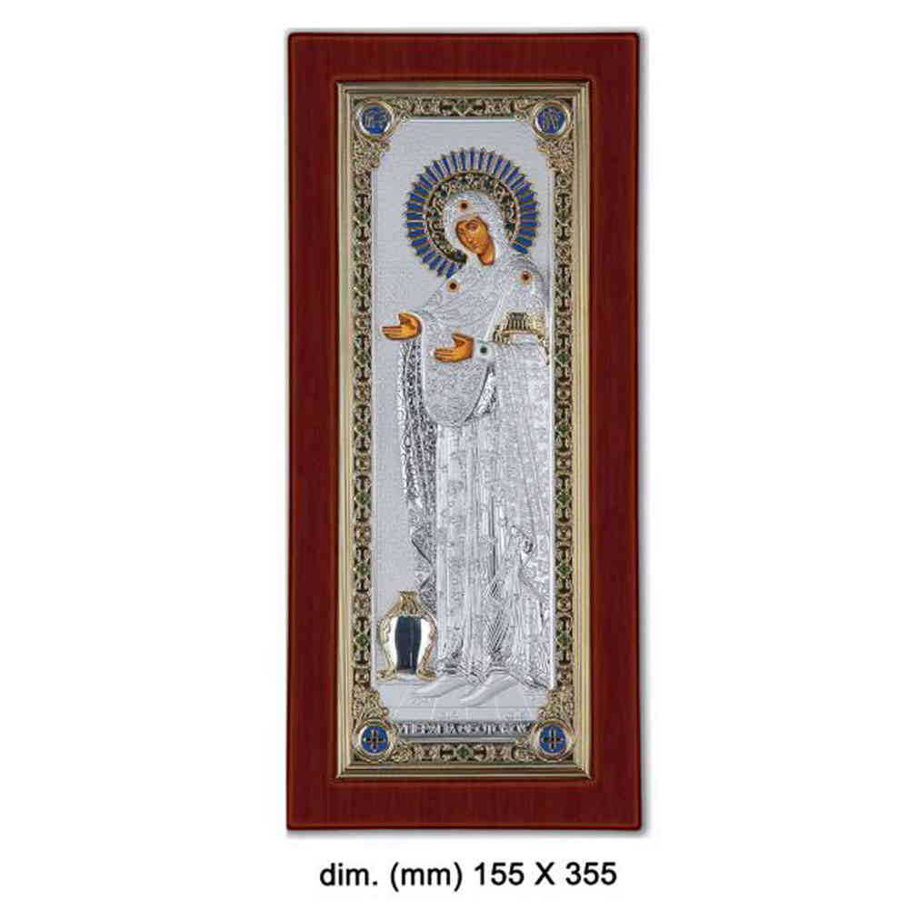 Virgin Mary Gerontissa Icon Handmade With Silver 950, Wooden Icon 135x275 mm