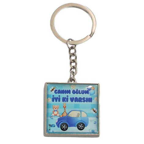 Son Themed Metal Square Shaped Double Face Keychain 36x95 mm