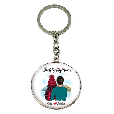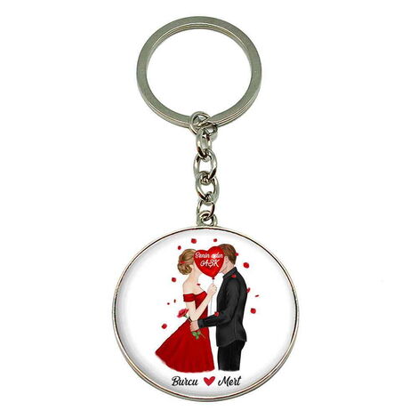 Sweetheart Themed Metal Round Keychain 40x100 mm