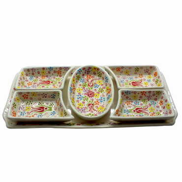 Turkish Ceramic Relief Platter Serving Set of 5 Pcs