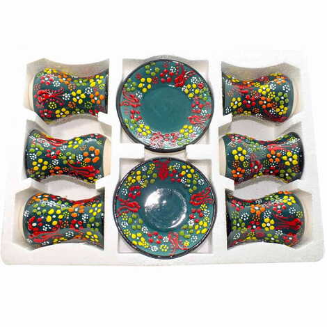 Turkish Ceramic Turquoise Tea Glass Set of 6 Pcs