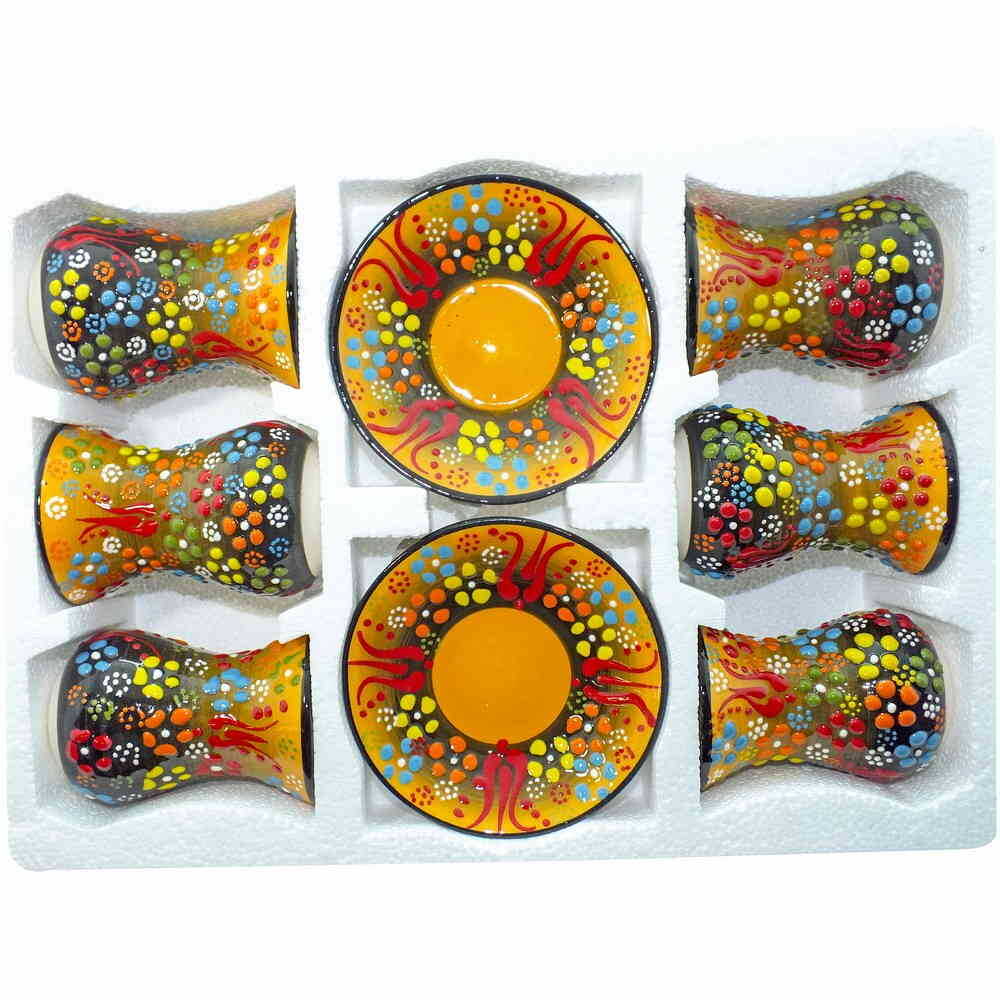 Turkish Ceramic Relief Tea Set of 6 Pcs