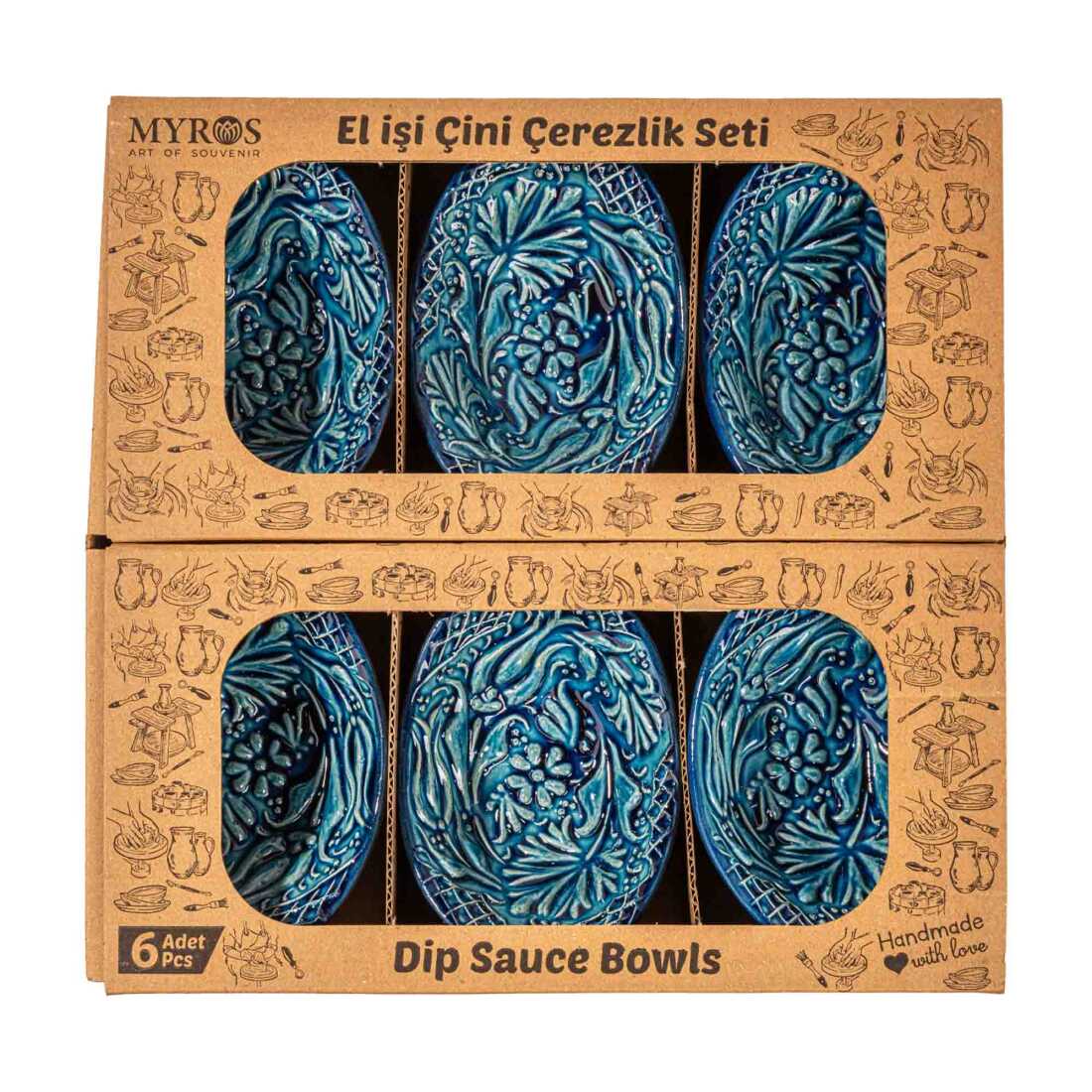 Turquoise Six Piece Boxed Gondola Snack Bowl Set