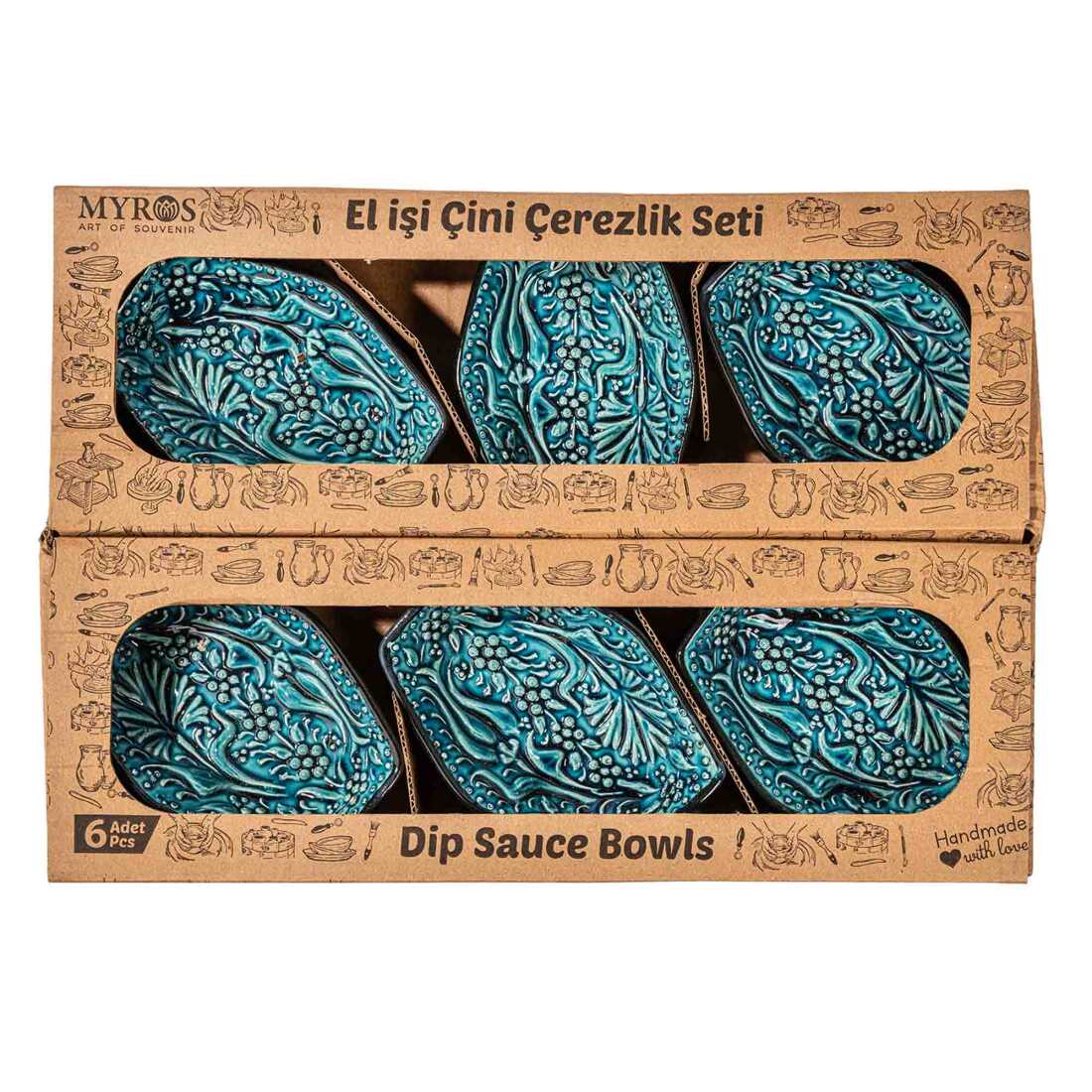 Turquoise Six Piece Boxed Prism Snack Bowl Set