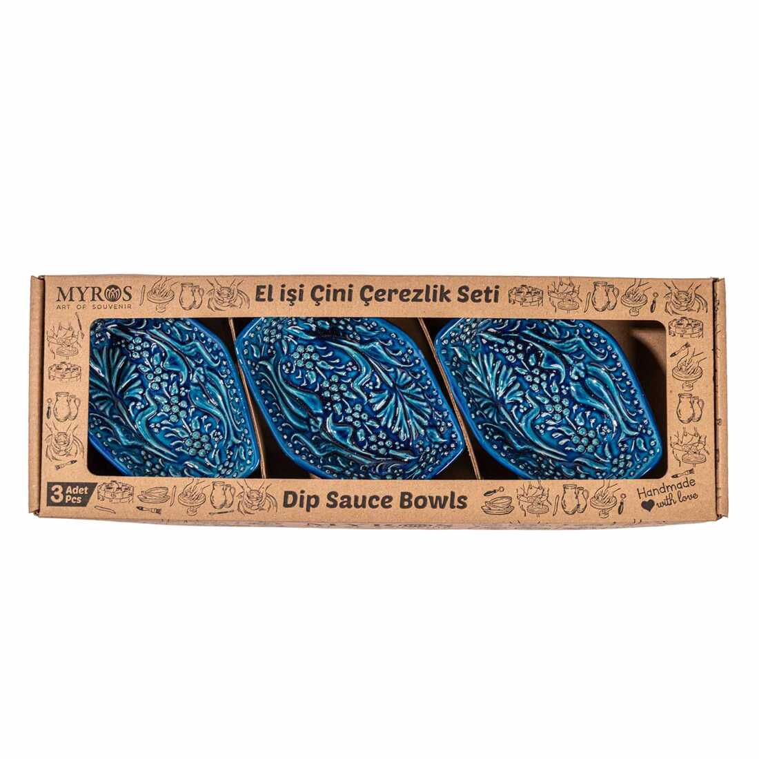Special Embossed Ceramic Themed Triple Round Snack Bowl Medium 18 cm