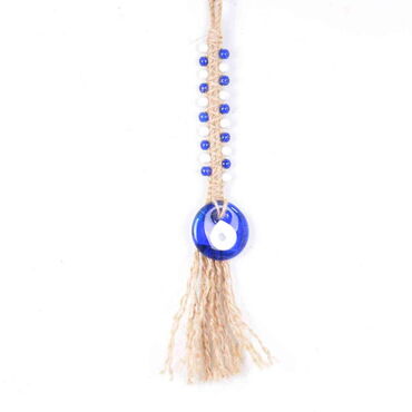 SKU: KDK55 Evil Eye Macrame Double Oval Shaped Ringed Knitted Bead Detailed Wall Hanging