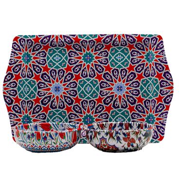 SKU: MET46-MND Mandala Themed Large Metal Tray with Four Bowl Set