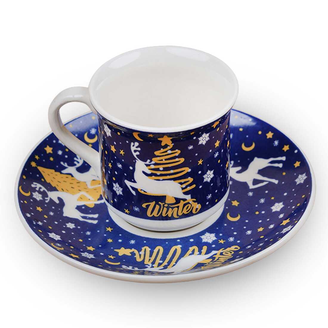 Wholesale Navy Blue Deer Themed Winter Coffee Cup