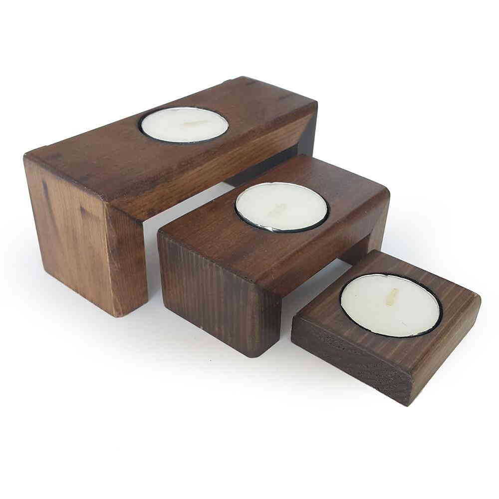 Wooden Triple Stair Mahogany Candle Holder Set of 3 pcs