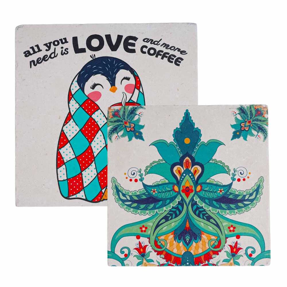 Yılbaşı Temalı Taş Bardak Altlığı 100x100 mm